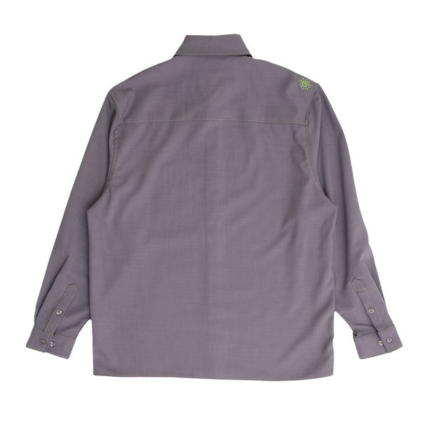 relaxed grey longsleeve shirt screenprinted and embroidered logo